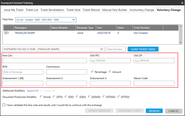 Optionnel. Entrez les modificateurs de billet supplémentaires pour l’échange volontaire.