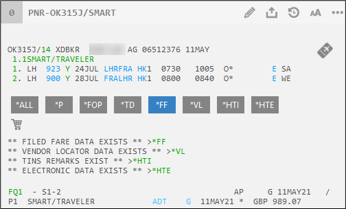 Terminez et récupérez (ER) le PNR/Fichier de réservation.