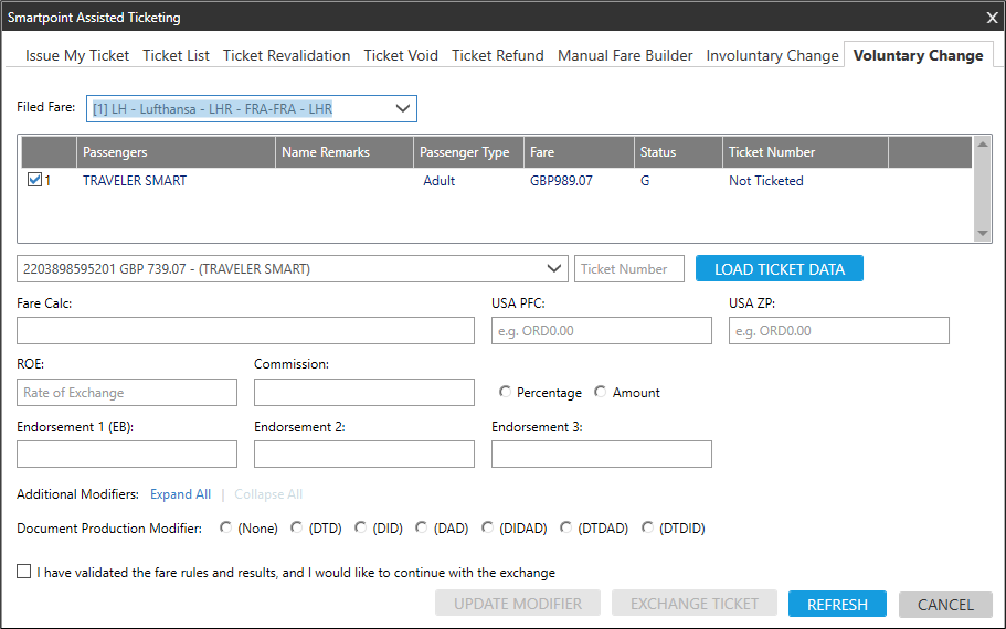 Optionnel. Entrez les modificateurs de billet supplémentaires pour l’échange volontaire.