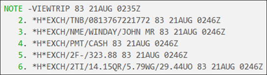 Dans Smartpoint 11.5 et versions antérieures, vous pouvez entrer *NP pour afficher les entrées historiques du bloc-notes liées au billet d’origine avant l’échange (H*EXCH) au regard du PNR/Fichier de réservation.