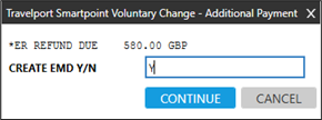 Cliquez sur CONTINUER pour afficher le troisième écran de paiement supplémentaire permettant de créer un EMD remboursable.