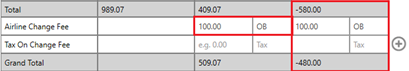 Le cas échéant. Dans la ligne Frais de modification de la compagnie aérienne , ajoutez des frais de modification pour le nouveau tarif enregistré.