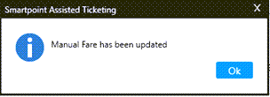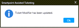 Cliquez sur OK pour approuver la mise à jour tarifaire. Si des modifications sont apportées aux modificateurs de ticket, l’enregistrement est mis à jour et un message de confirmation s’affiche.