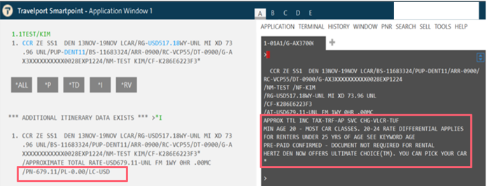 Aucune documentation n’est fournie au client pour une location à tarif prépayé. Les champs /PN, /PL et /LC ne sont renvoyés que pour les locations prépayées. Par conséquent, si vous voyez ces champs dans le segment des voitures, vous pouvez supposer que l’autorisation de crédit et les frais ultérieurs seront appliqués sur la carte de crédit du client.