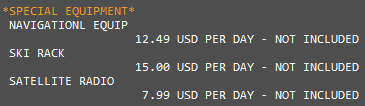 Informations sur les frais pour les types d’équipements spéciaux. Les règles pour les équipements spéciaux ne peuvent pas être restituées pour toutes les sociétés de location. |