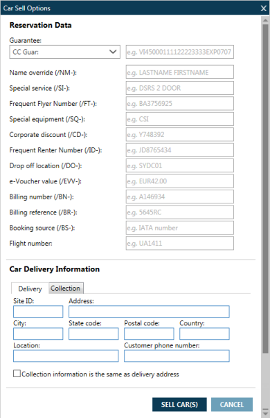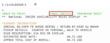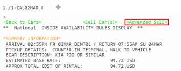 Pour plus de modificateurs de vente de voitures, voir KB0023581 : Guide des formats Galileo pour les voitures dans le Base de connaissances Travelport.