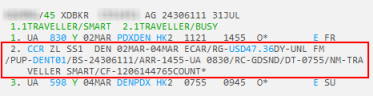 Format équivalent Travelport+ (1G) et Apollo (1V)
