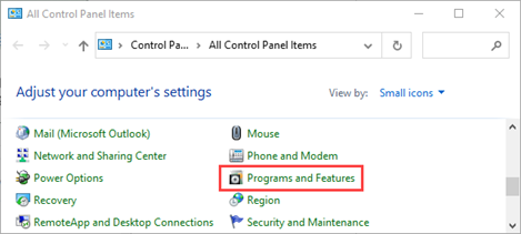 Cliquez sur Programmes et fonctionnalités pour afficher la fenêtre Programmes et fonctionnalités.
