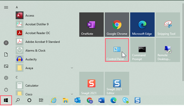 Dans le menu Démarrer, sélectionnez Panneau de configuration pour afficher le Panneau de configuration Windows. Le Panneau de configuration peut afficher des icônes ou des catégories, en fonction de l’option d’affichage du Panneau de configuration sélectionnée.