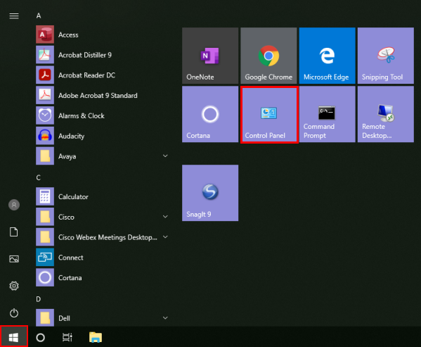 Dans le menu Démarrer de Windows, sélectionnez Panneau de configuration.