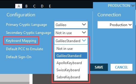Mappage ApolloKeyboard sur Travelport+ (GalileoStandard)