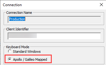 - Vérifiez que la case d’option Apollo/Galileo Mapped est sélectionnée pour la connexion.