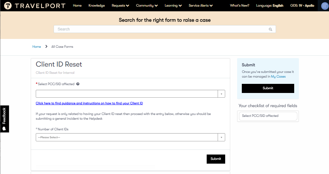 - Contactez l’administrateur Smartpoint de votre agence ou d’autres membres du personnel de l’agence disposant d’une autorisation de deuxième niveau pour Travelport+ ou Apollo. Le personnel disposant d’une autorisation de deuxième niveau peut réinitialiser les ID client dans son PCC autorisé.