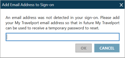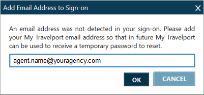 1. Cliquez sur OK. Si votre connexion n’a pas d’adresse e-mail associée, la boîte de dialogue Ajouter une adresse e-mail s’affiche.