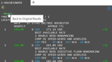 Note: Hotel Index n’est actuellement pas pris en charge pour Hotel Retail. Si Hotel Retail est activé, la réponse Hotel Index continue d’être affichée dans une fenêtre principale de Travelport Smartpoint.