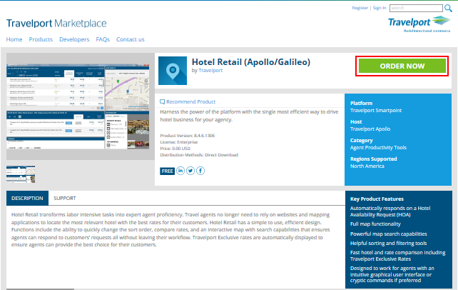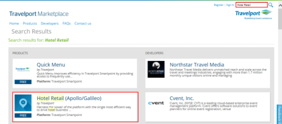Note: Hotel Retail ne peut être téléchargé que par l’administrateur de l’agence pour Travelport Marketplace. Contactez votre représentant de compte Travelport si vous ne connaissez pas votre administrateur d’agence ou si vous n’avez pas d’administrateur d’agence.