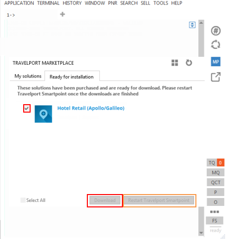 - Une fois Hotel Retail téléchargé, cliquez sur Redémarrer Travelport Smartpoint.