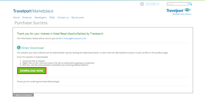 Si l’administrateur de votre agence a déjà commandé Hotel Retail, vous pouvez utiliser le plug-in à partir de la page Mes solutions de Travelport Marketplace.