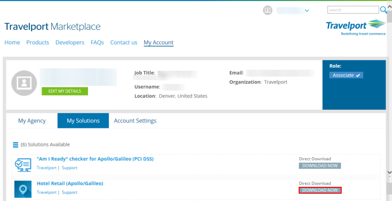 - À partir de la page Mes solutions de Travelport Marketplace.