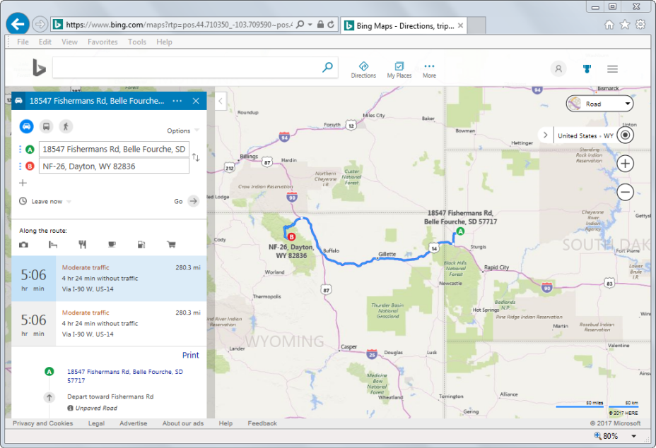 - Cliquez avec le bouton droit de la souris sur l’emplacement de destination et sélectionnez Itinéraire vers. L’emplacement cartographié le plus proche est sélectionné.