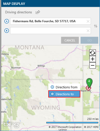 - Dans l’affichage de la carte, cliquez sur DIRECTIONS.