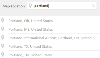 - Dans Emplacement sur la carte, entrez le nom d’une ville, d’un aéroport ou d’un autre lieu, puis cliquez sur ENTRER. S’il existe plusieurs emplacements pour le nom de recherche, sélectionnez-en un dans la liste des correspondances. Vous pouvez utiliser la souris ou les touches fléchées pour faire défiler la liste des cartes.