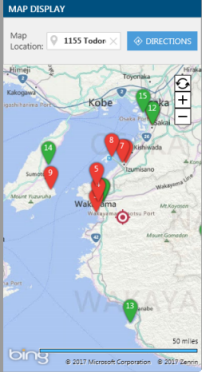 Pour sélectionner un établissement hôtelier, cliquez sur une épingle verte . La liste des détails du tarif de la propriété sélectionnée s’affiche et l’épingle de sélection devient bleue