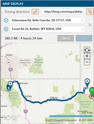 - Copiez un lien de la carte et des instructions pour les ajouter aux e-mails ou à d’autres documents.