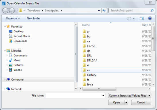 - Obtenez ou créez un fichier de calendrier personnalisé. Smartpoint utilise des fichiers CSV (Comma-Separated Values). Voir Création de fichiers de calendrier personnalisés pour plus d’informations et d’instructions.