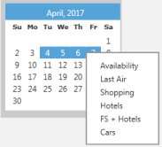 - Sélectionnez les dates des vols, de la prise en charge et du retour de la voiture, ou de l’enregistrement et du départ à l’hôtel. La plage de dates est surlignée en bleu.