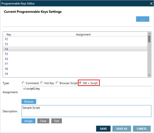 Créez une Pkey (clé programmable) dans l’éditeur de touches programmables pour exécuter un script spécifique.