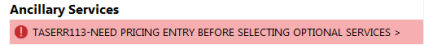 Note: L’écran Services auxiliaires autorise une quantité maximale de 99 pour tous les services auxiliaires associés au vol. Toutefois, la quantité d’un accessoire autorisée est déterminée par le transporteur, qui ne peut pas confirmer une demande accessoire qui dépasse sa quantité maximale.