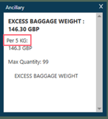 Dans Smartpoint 11.1 et les versions antérieures, les frais d’excédent de bagages n’étaient pris en charge que par unité de bagages. À partir de la version 11.2 de Smartpoint, des frais d’excédent de bagages peuvent être facturés en fonction du poids, s’ils sont pris en charge par la compagnie aérienne.