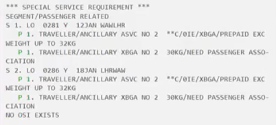 Note: Certains transporteurs exigent des commentaires sur les relais statiques avec les accessoires d’excédent de bagages. Vérifiez auprès de l’opérateur s’il a besoin d’un commentaire avec ce service auxiliaire et s’il a besoin de données spécifiques ou d’un formatage pour le texte. -