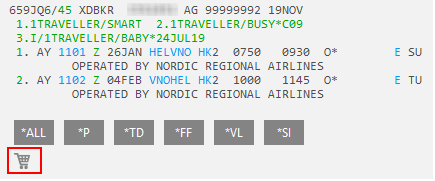 Dans la fenêtre du visualiseur de fichiers PNR/réservation, cliquez sur l’icône Panier