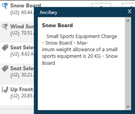Si vous passez la souris sur le nom d’un service, une brève description du service peut s’afficher, telle que la quantité maximale pour ce type de service, une description des prix dans une fourchette et une indication si les prix des bagages sont au poids ou à l’unité.
