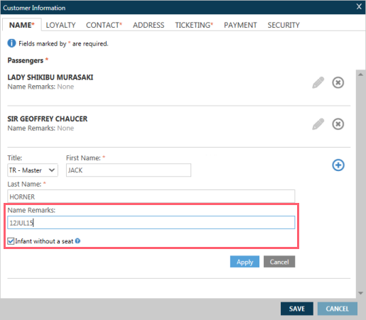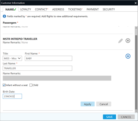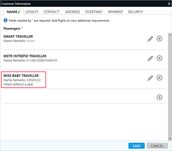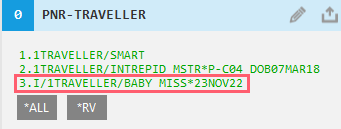 Pourboire! Pour ajouter un bébé, au moins un passager majeur doit déjà être présent dans le PNR/Dossier de Réservation.