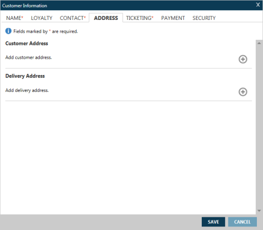 - Dans l’écran Informations sur le client , cliquez sur l’onglet Adresse pour afficher l’écran Adresse.