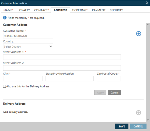 - Cliquez sur Appliquer pour stocker les informations d’adresse du client.
