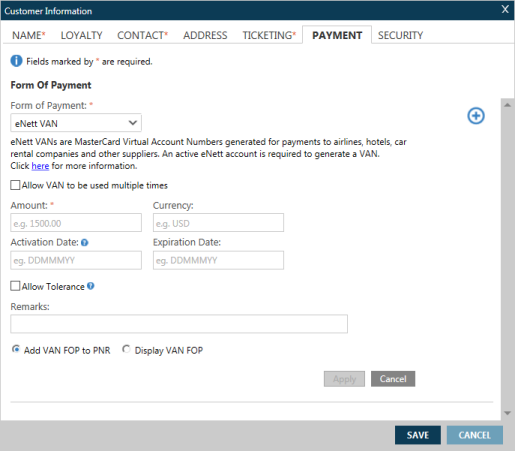 - Pour les VAN à usage unique, sélectionnez l’option par défaut Ajouter le FOP du VAN au PNR.