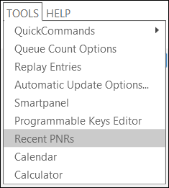 - Fenêtres classiques . Dans le menu Outils , sélectionnez PNR récents.