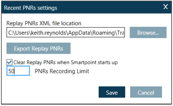 À partir de la fenêtre Paramètres des PNR récents, vous pouvez :