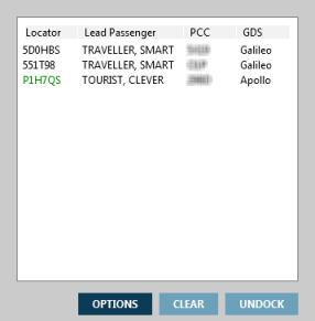- Optionnel. Cliquez sur OPTIONS pour afficher la fenêtre Paramètres des PNR récents.