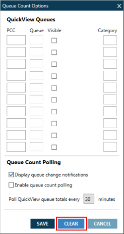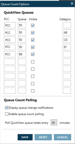 - Optionnel. Sélectionnez Afficher les notifications de changement de file d’attente si vous souhaitez que Travelport Smartpoint vous avertisse automatiquement lorsque des PNR/fichiers de réservation sont ajoutés à une file d’attente.