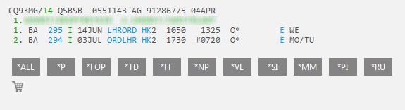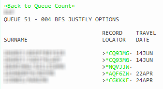 Notez que cet exemple n’affiche PAS de message Enregistrement en file d’attente . Par conséquent, le PNR/Fichier de réservation n’a pas été ouvert dans la file d’attente et n’est affiché que pour consultation.