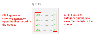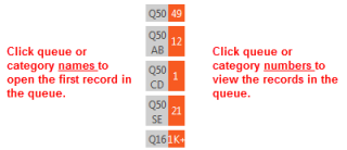 - Cliquez sur le nombre de files d’attente pour afficher les enregistrements répertoriés dans une file d’attente ou une catégorie.