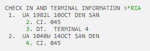 Ajoutez une seule remarque au segment 1. Exemple : RI. S1*RENDEZ-VOUS AU POINT DE RENDEZ-VOUS AU TERMINAL TROIS |