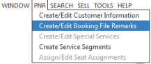 - Fenêtres classiques . Dans le menu PNR , sélectionnez Créer/Modifier un fichier de réservation Remarques.