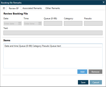 Création et modification du fichier PNR/Réservation Remarques