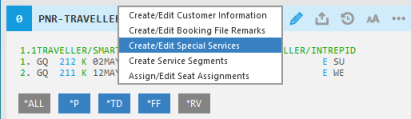 - Fenêtres classiques . Dans le menu PNR , sélectionnez Créer/Modifier des services spéciaux.